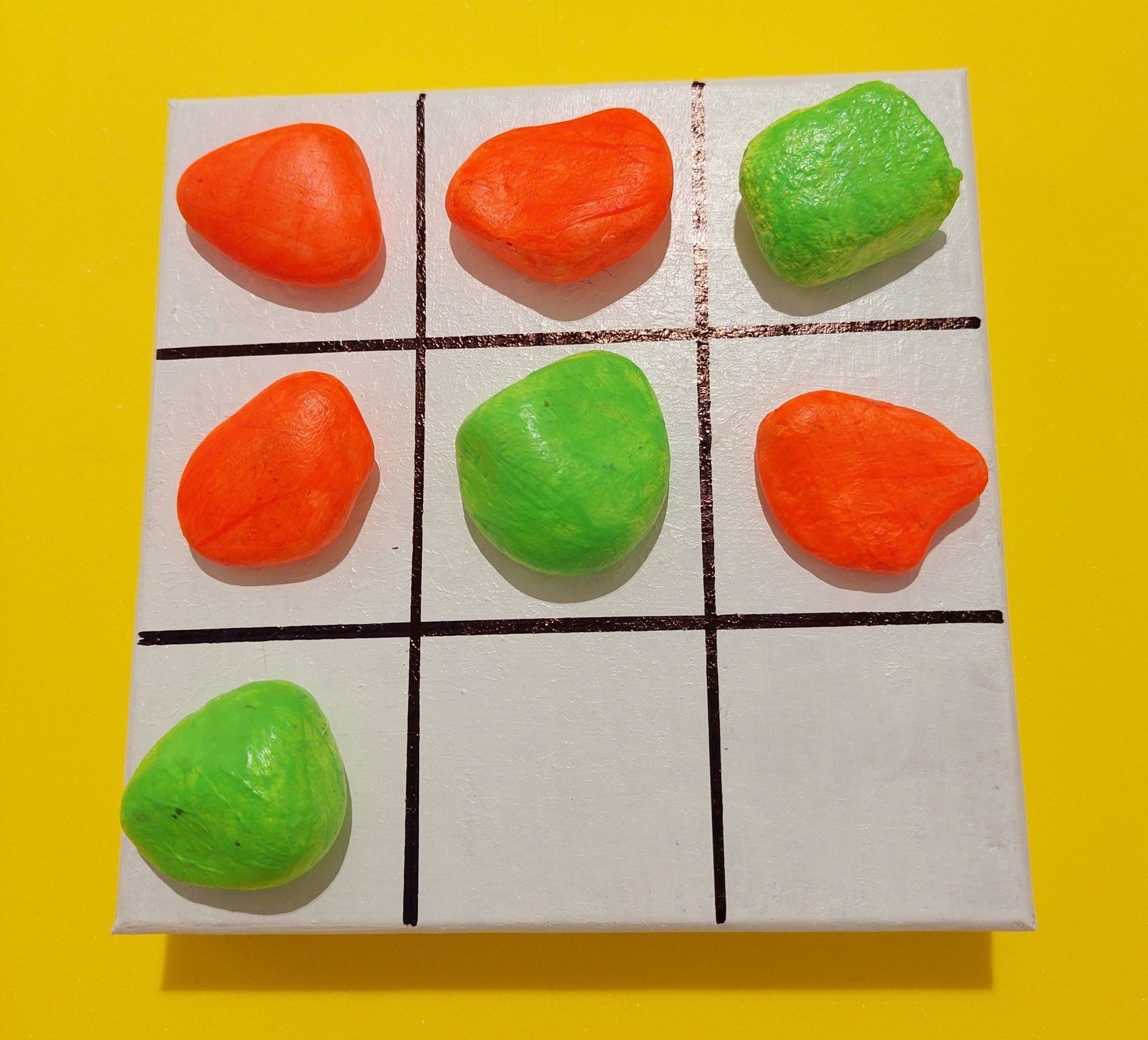 Den Schachteldeckel als Spielfeld weiß bemalen und gut trocknen lassen,