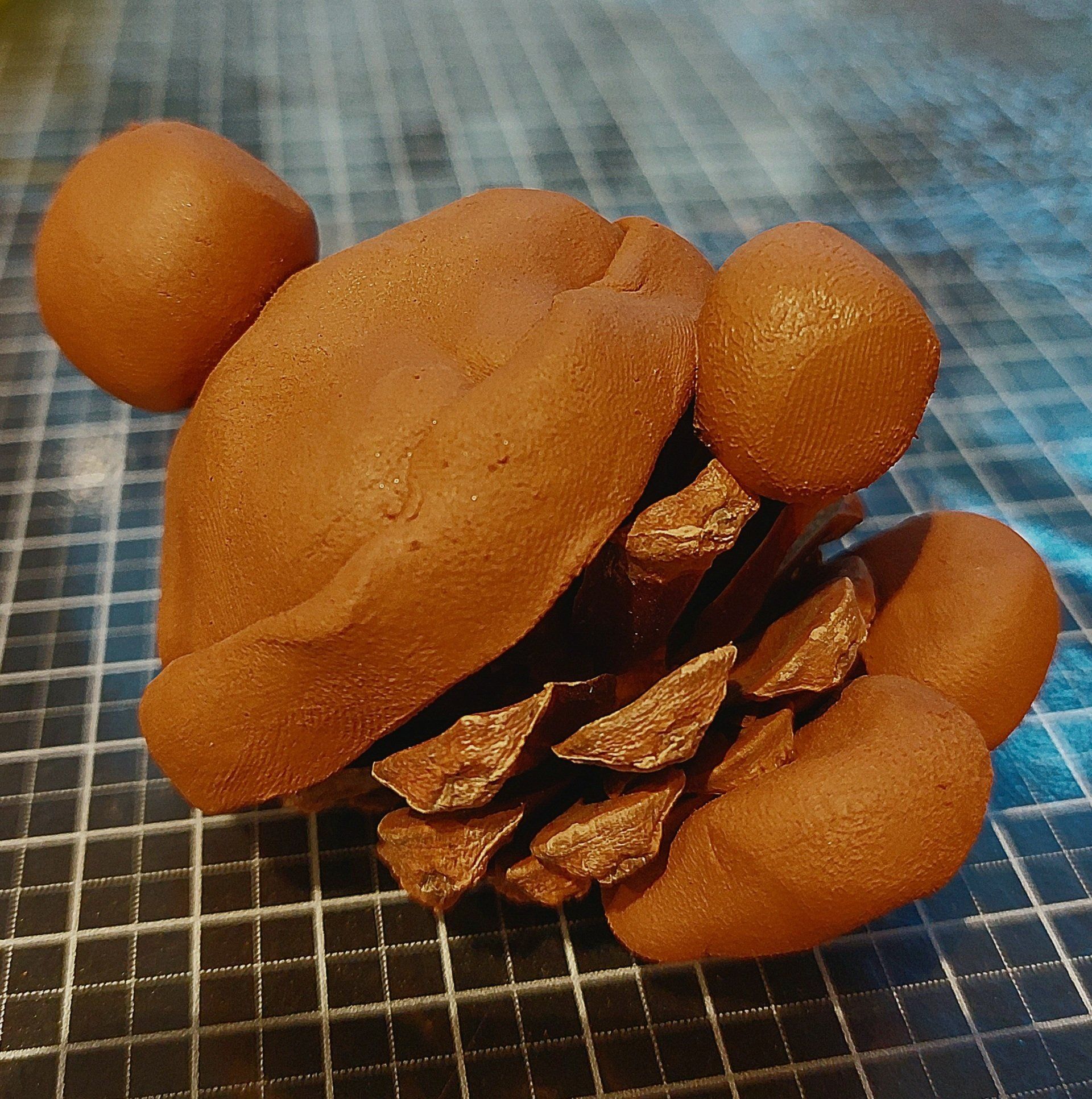 Wir sind aus einem Zapfen und dann bekamen wir von Stefanie noch eine Knollennase, große Schuhe und eine lustige Mütze aus Soft Ton modelliert.