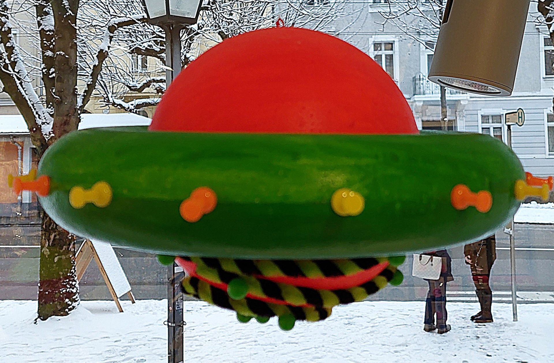 Und das ist der passende Schneemann dazu, natürlich stilsicher mit Zylinder ...