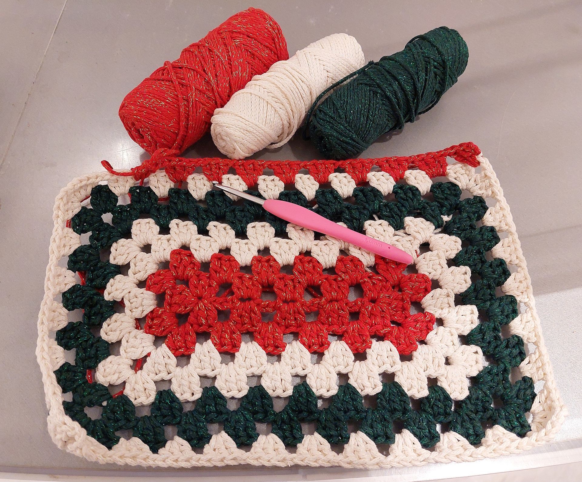 ist fertig, Granny Square mit dem neuen Glitzer Makrameegarn...