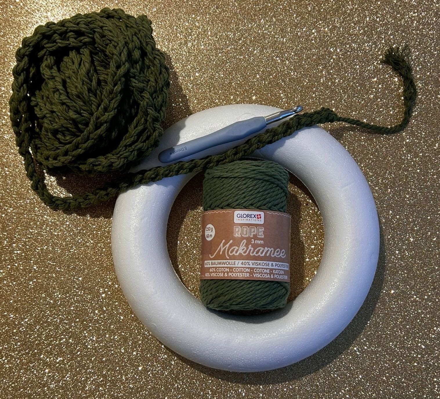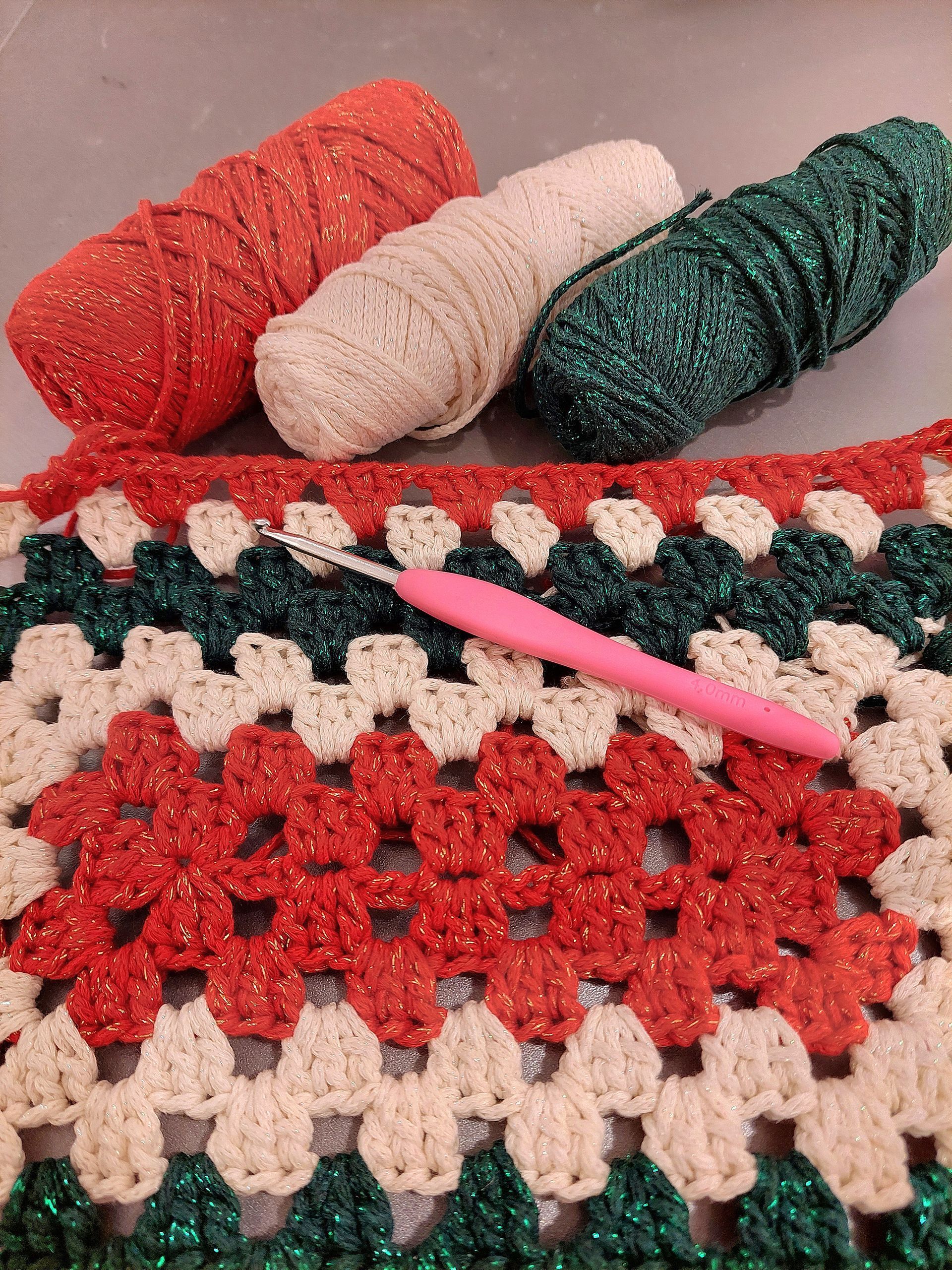 und einer Häkelnadel Nr. 4...