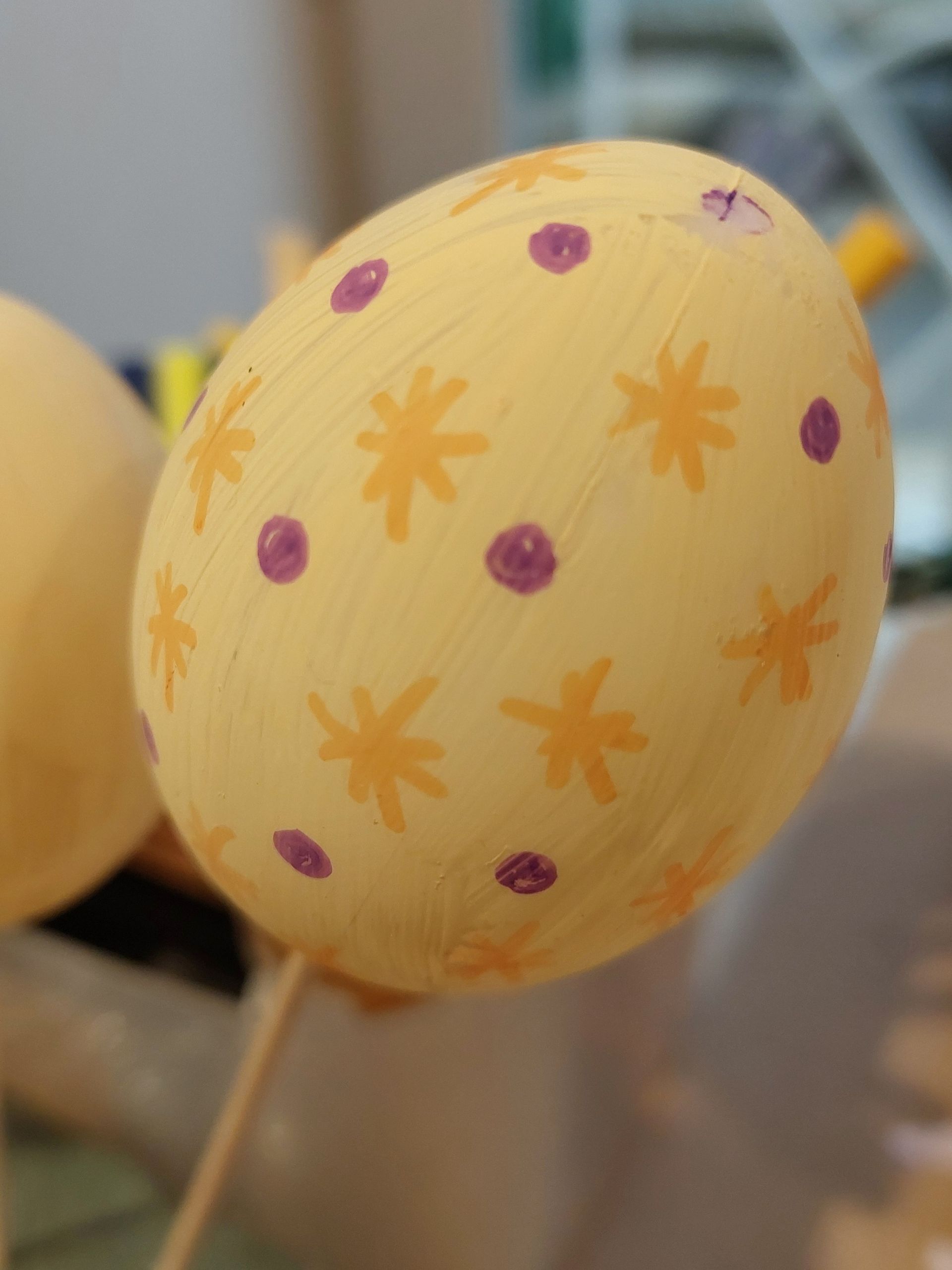 Neues aus der Osterwerkstatt, die ersten Eier wurden bemalt und sind schon am trocknen. Zuerst wurde mit Acrylfarben grundiert und dann mit Filzstiften weitergemalt..Wir helfen natürlich dem Osterhasen, der hat ja soviel zu tun....