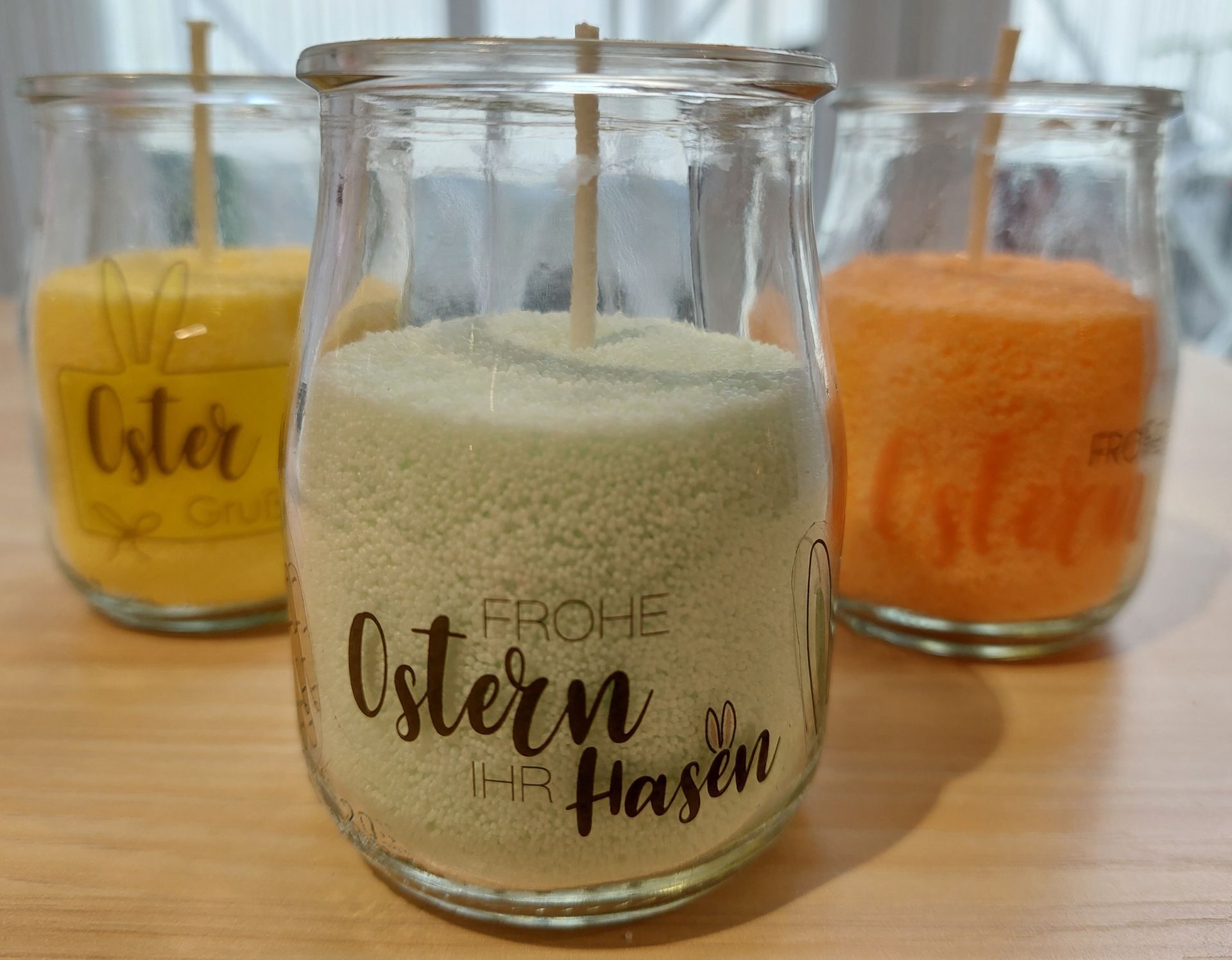 Diese tollen Gläser wurden zuerst mit Transferfolie beklebt und nach dem Trocknen mit Kerzensand befüllt, eine tolle Geschenkidee...
