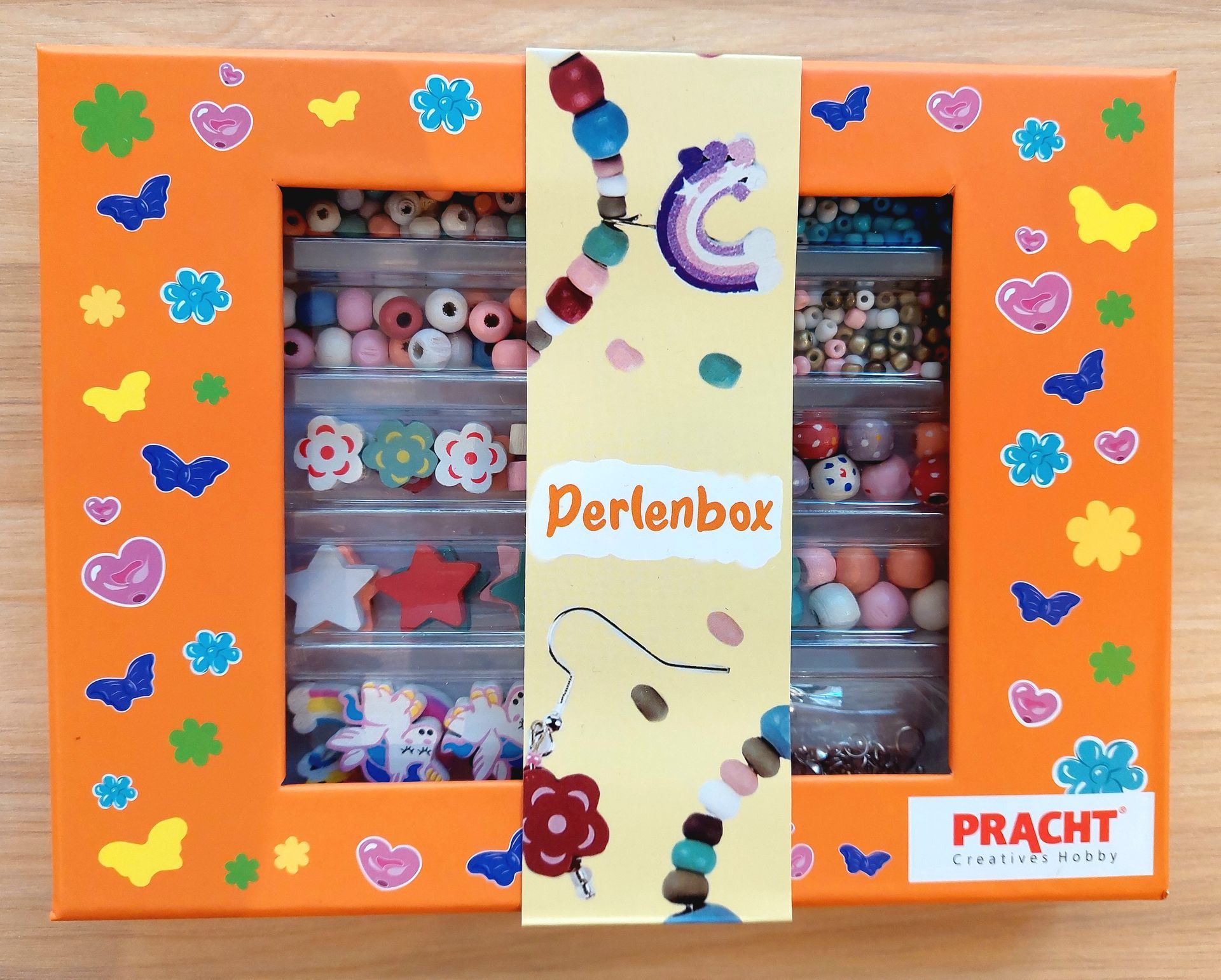 Unsere Perlenboxen, gefüllt mit vielen bunten Perlen und Zubehör , perfekt zum gleich losfädeln...