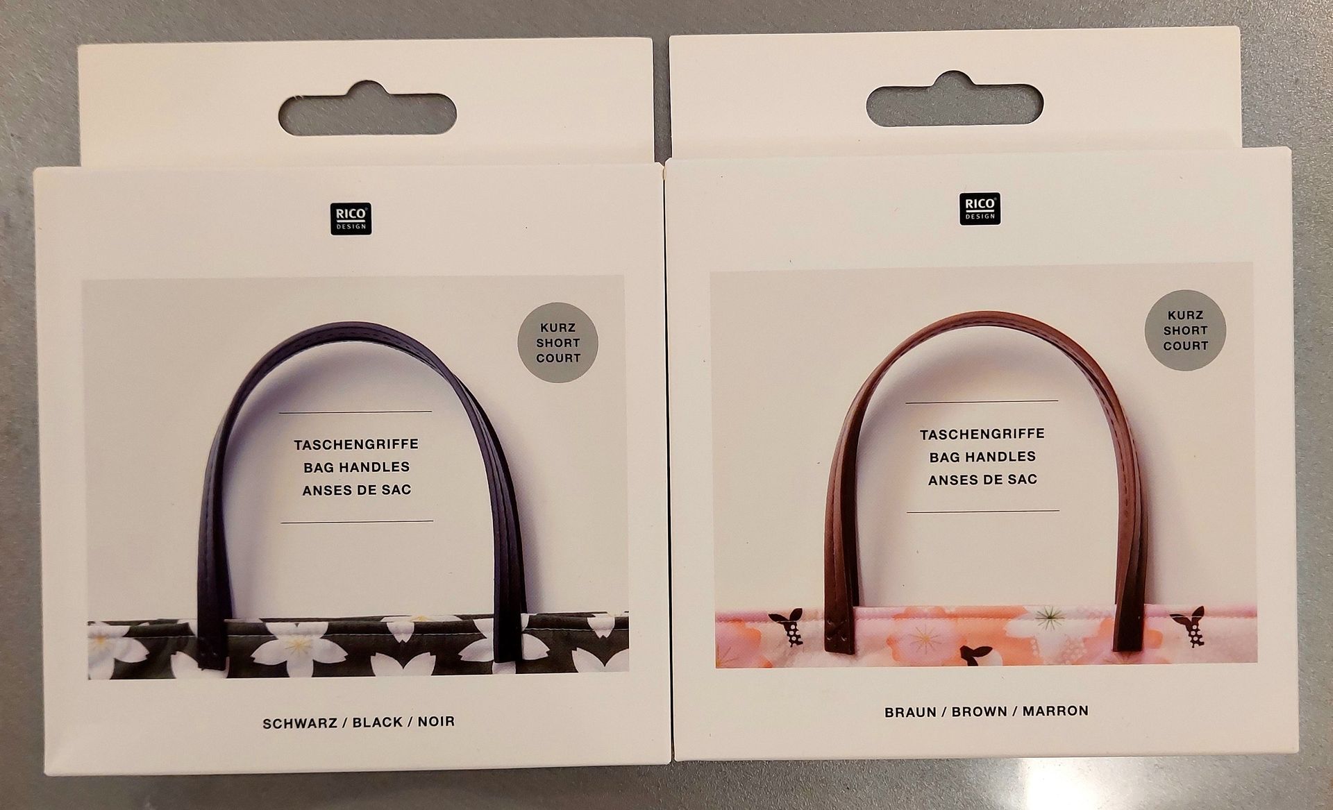 und Taschengriffe aus Kunstleder in braun und schwarz...